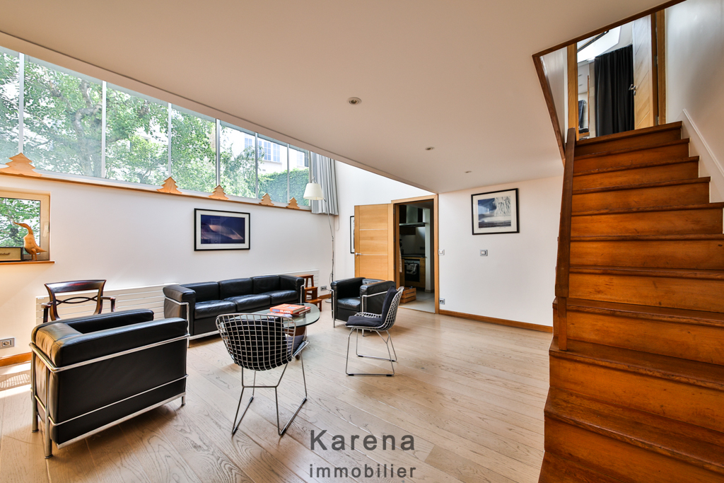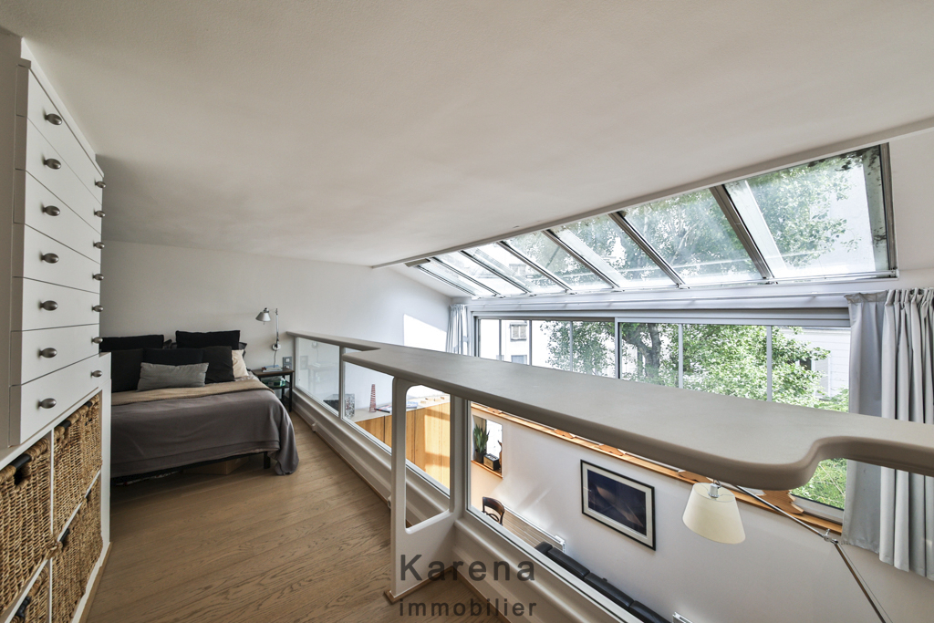 Quartier Alésia, au premier et dernier étage, atelier d’artiste composé d’une grande pièce à vivre, une spacieuse cuisine aménagée et équipée, une chambre en mezzanine avec une salle d’eau et WC.