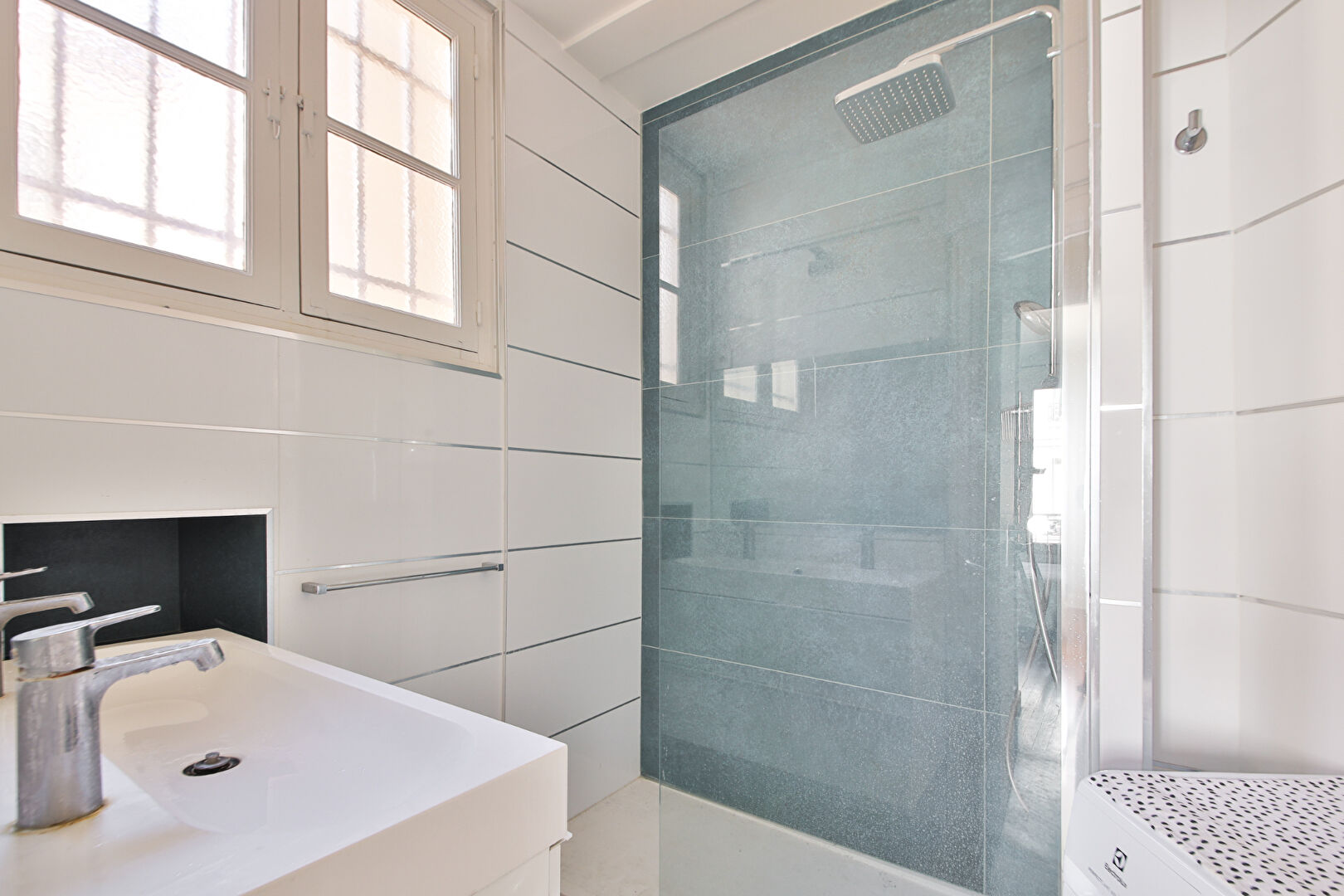 Entièrement rénové il y a deux ans dans un style contemporain, l’appartement allie charme de l’ancien et confort moderne.