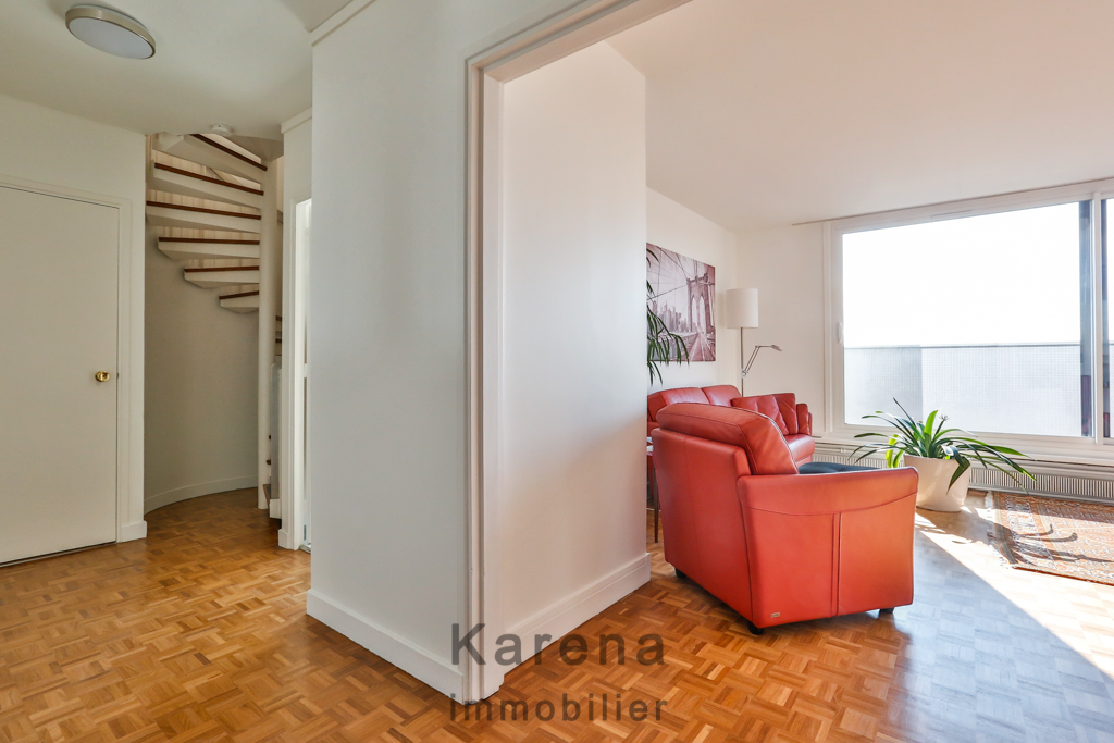 Exclusivité Karena immobilier, proche Denfert-Rochereau, nous vous proposons un appartement en duplex au 12ème et dernier étage plein Sud et sans aucun vis à vis.